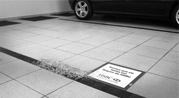 На втором этапе рекламной кампании на городских парковках рассыпали битое стекло и рядом наклеивали стикер: «Надеемся, что автомобиль был застрахован в такой-то компании» (рис. 24). Совсем просто, недорого и действенно.
