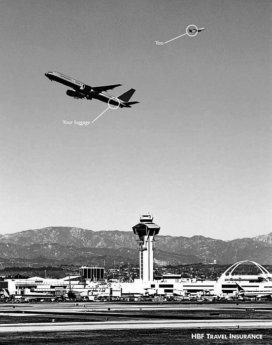 Взгляните, вы летите в одну сторону, а самолет с вашим багажом направляется совсем в другую (рис. 26). Ужасная ситуация. На помощь приходит компания по страхованию непредвиденных случаев в путешествиях.