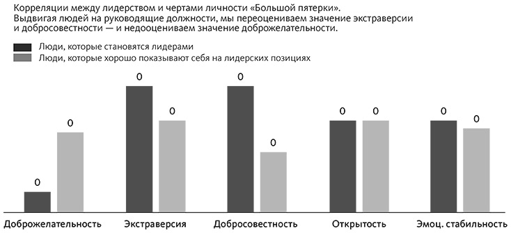 Исследования в области лидерства показывают: чтобы стать лидером, человеку нужно быть эмоционально стабильным, экстравертным, открытым и добросовестным, а вот о доброжелательности можно не беспокоиться. Однако стать лидером – это одно, а быть успешным в качестве лидера – другое. Здесь заметно меньше требований к добросовестности и заметно больше – к доброжелательности. Нужно быть строгим, чтобы стать лидером. Но в то же время нужно быть доброжелательным, чтобы быть успешным лидером.