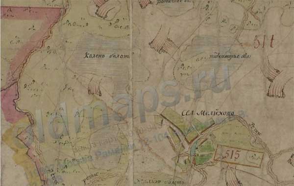 Рис. 2. Фрагмент карты генерального межевания с нанесённым на неё болотом Пичкеморье