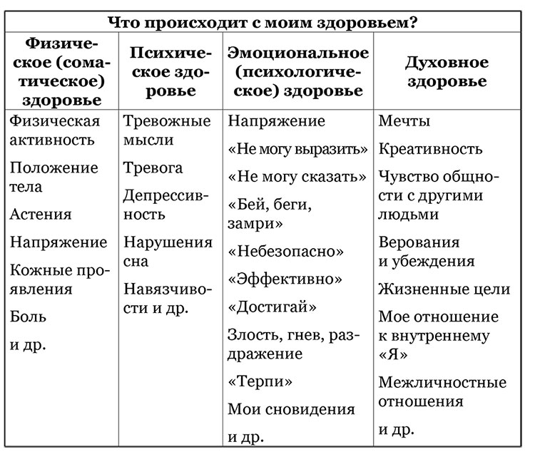 Упражнение для пациентов: «Заполните ниже табличку самонаблюдений за последнее время. Попробуйте описать, что происходит у вас внутри, уйдите от медицинского или телесно-органного языка».