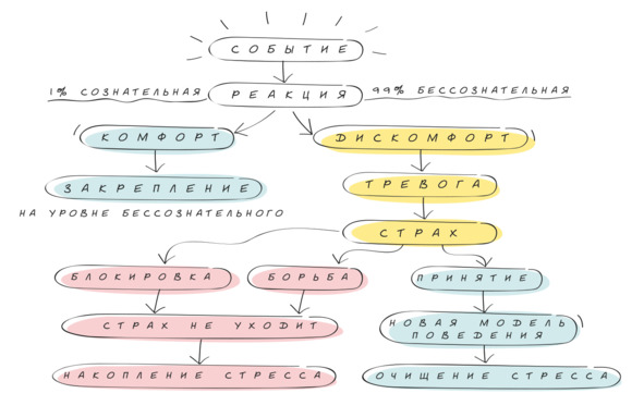 Дискомфортное состояние для сознания является критическим событием, требующим значительных ресурсов для поиска новой стратегии поведения. Время перестройки зависит от индивидуальных особенностей: одни люди быстро принимают новые условия и перестраиваются, другие проходят более длительный путь отрицания, борьбы и лишь затем – принятия. Есть те, кому не хватит всей жизни, чтобы адаптироваться к меняющейся реальности. Для них дискомфортные состояния становятся хроническими, что приводит к постепенному истощению внутренних ресурсов и сокращению жизненной энергии.
