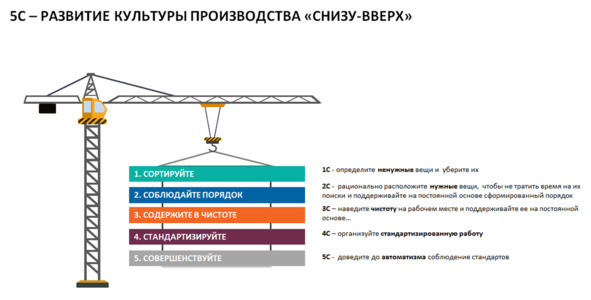 «5С» – это лучшая мировая формализованная практика по развитию корпоративной производственной культуры от японцев. Она заключается в последовательной реализации пяти довольно трудно реализуемых «С»: