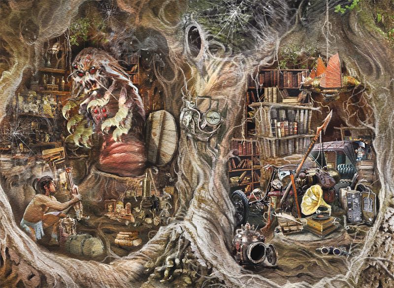 Похожие на короткие обрубки древесного ствола ноги на удивление мягко и бесшумно скользили со ступени на ступень, а верхние конечности, по паре справа и слева, в локтевых суставах разделялись на некие подобия клешней, так что рук у великана было даже не четыре, а восемь! Остроконечную головогрудь его усеивали красноватые бусинки, напоминающие многочисленные глаза паука, вместо рта зияла некая безобразная щель, а по обе стороны от нее покачивались сегментированные усики, словно у трехкрылки, только намного длиннее и толще. Как ни поразительно, но хозяин дупла, напичканного чудесными вещами, был уродливее брюхорыла.