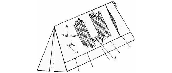 Зная это и используя ширину спинки стула в качестве «линейки», можно попытаться измерить все видимые повреждения ската палатки, обращенного к фотографу, а также их местоположение. Результат этой работы зафиксирован на схеме, представленной выше. Сразу следует отметить неизбежность погрешности, связанной с различием масштабов на фотоснимках палатки и неизвестностью поправочного коэффициента при переходе от первого фотоснимка ко второму.