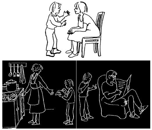 Во-первых, если вы хотите послушать ребенка, обязательно повернитесь к нему лицом. Очень важно также, чтобы его и ваши глаза находились на одном уровне. Если ребенок маленький, присядьте около него, возьмите его на руки или на колени, можно слегка притянуть ребенка к себе, подойти или придвинуть свой стул к нему поближе.