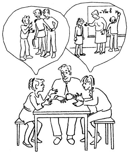 Не всегда, конечно, конфликт разрешается так быстро. Иногда ребенок, чувствуя готовность отца или матери его слушать и понимать, охотно продолжает рассказывать о случившемся. Взрослому остается только активно слушать его дальше.