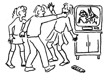 АНЯ: Она включила, а он переключил, а она снова включила, а тогда он ее толкнул… вот так… (Показывает.)