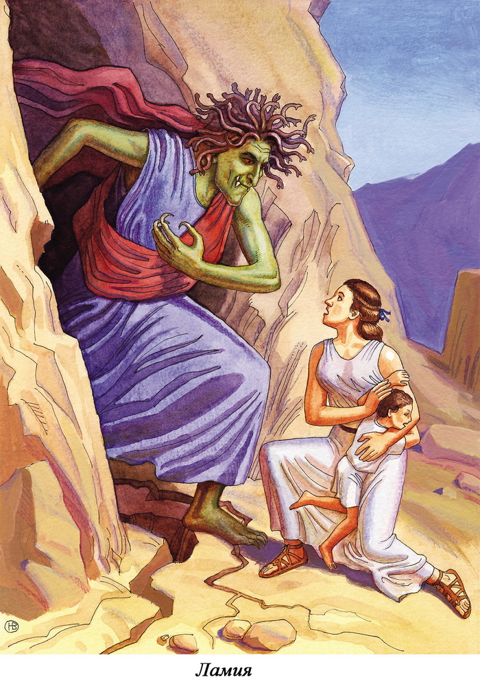 Как, например, история о кровожадной Ламии, несколько лет губившей младенцев в Аргосе. Ламия была чудовищем, выбравшимся из подземелий Тартара. С виду она походила на женщину, но в ней не было ничего человеческого. Из её пасти наружу выступали отвратительные клыки, костлявые когтистые руки беспрестанно шарили в поисках добычи, вместо волос на голове извивались и шипели ядовитые гадюки, красные глаза горели безумной злобой, всё тело было покрыто безобразными гноящимися язвами. Это существо питалось кровью младенцев, которых она похищала, стоило матери или няньке отлучиться куда-нибудь и оставить ребёнка без присмотра. Ламия обычно утаскивала малыша в укромное место, иногда прямо в родительском доме, и высасывала у него кровь. Выследить её мешало то, что она умела, когда надо, становиться невидимой и даже принимать облик животного – кошки, собаки или крысы.