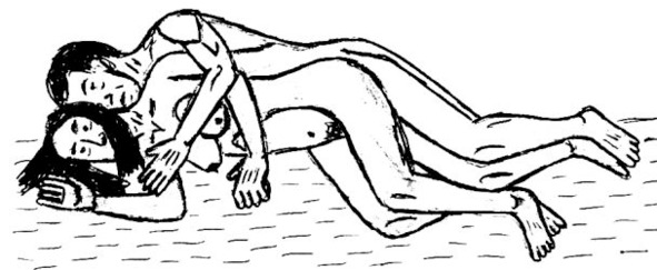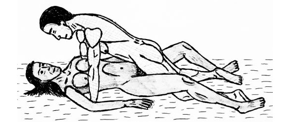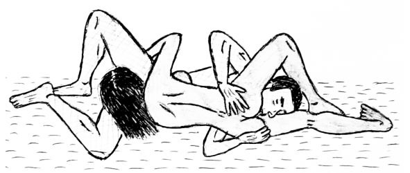 Очень удобная поза. Вы лежите на боку позади подружки, а она свободной рукой щекочет себе клитор. Ваш пенис проходит у нес между ног, а его головка касается клитора. Если же при этом женщина слегка сдвинет бедра, а вы будете совершать движения вперед и назад, то вы оба сможете получить куда больше удовольствия, чем от классической позы.
