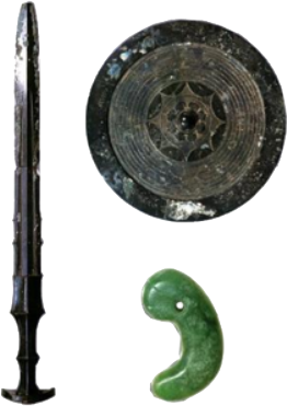 Увы, бикуни подтверждает – «меч, скашивающий траву» – Кусанаги – мифический японский клинок, полученный Дзимму от богини Аматэрасу – утерян. При венчании на царство микадо получает его копию. Более того, девушка высказывает мнение, что и другие священные императорские регалии – бронзовое зеркало и подвески из яшмы – поздние реплики. Правда последнее бикуни произносит шепотом. За такие слова можно и в тюрьму попасть.