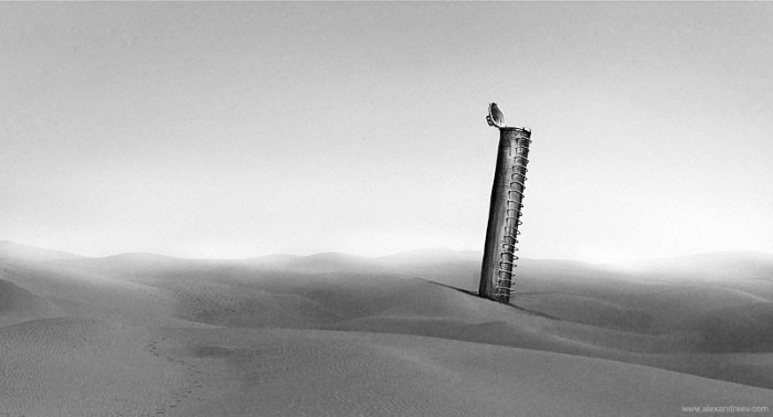 Нужно было ждать восхода Пифии или искать какие-нибудь дрова, чтобы развести костер. Впрочем, никаких намеков на деревья вокруг и близко не было – ровная, как стол, полупустыня расстилалась в серых сумерках во все стороны на сколько хватало глаз. Кое-где из земли, полузанесенные песком, торчали ржавые трубы, балки или какие-то совсем уже не опознаваемые железки.