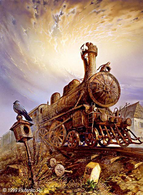 Паровоз, на котором приехали роботы, уничтоженные Мией, так и стоял на станции. Это был очень странный паровоз – вместо кабины у него имелась только открытая площадка, заваленная дровами, а из органов управления принцесса обнаружила лишь датчик давления, переключатель движения вперед-назад и ручку стравливания пара из котла. Высокая кривая труба торчала вверх, словно ствол какой-то древней пушки.
