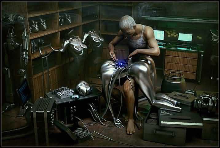 То, что он увидел, повергло Ричарда в шок: в тусклых лучах восходящей Пифии на куске металла, отполированном до блеска, танцевал вальс ржавый человекоподобный робот, вместо партнерши удерживая в руках чугунное колесо от роботрактора.