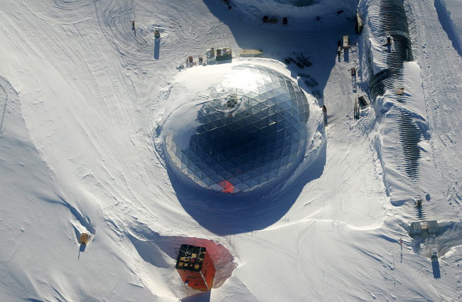 Через несколько километров выяснилось, что посреди равнины находилась вовсе не гора, а искусственная постройка. Мурмях представлял собой огромное сооружение из стали, похожее на опрокинутую тарелку с куполом на днище. Несколько сотен метров в высоту и не меньше пяти километров в диаметре, он возвышался над заснеженной равниной, и в самом деле напоминая гору.