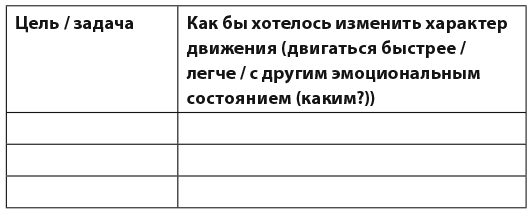 2. Через ощущения в теле: что вы чувствуете, когда думаете о способности двигаться? В каком участке тела она живет? Из какой точки начинается? Какое это движение – плавное или порывистое, непрерывное или с паузами?