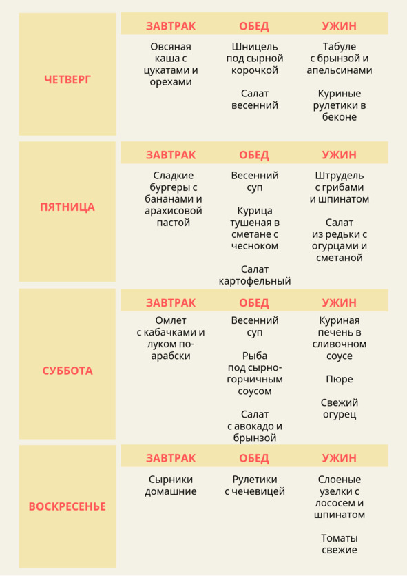 Апрель… Срочные проекты завершены, токсикоз немного отступил и стало значительно легче. Мои будни по-прежнему оставались под девизом отчаянной домохозяйки. Но с отступлением токсикоза ко мне вернулся здравый смысл. И я начала думать, как же оптимизировать процесс приготовления еды, чтобы он занимал не более одного, максимум полутора часов в день. И при этом всегда были вкусными, сытными и свежими завтрак, обед и ужин. Как бы сделать так, чтобы время, которое я проводила раньше на кухне, я могла проводить в бассейне, на прогулке, в салоне красоты, за чтением книги, за работой над любимым проектом? В конце концов я хочу просто больше заниматься развитием дочки и общаться с мужем!
