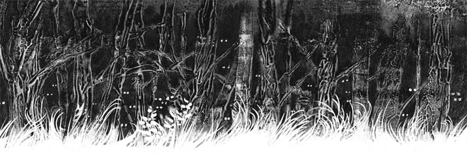Он шёл туда, где огромные деревья сменятся тоненькими и чахлыми, почти лишёнными голосов, где лежат непролазные буреломы, а земля – розовая от мха, как рана, и к осени в этой ране капельками крови собирается клюква.
