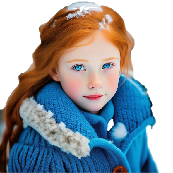 К слову о ребёнке: это девочка с ярко голубыми, огромными и глубокими как океан глазами, у неё курносый нос и рыжие, словно огонь волосы. На столько очаровало человеческое дитя деда Мороза, что сжалился он.