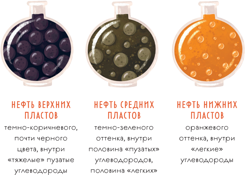 – Многие, даже взрослые, уверены, что нефть должна быть непременно черного цвета. Но на самом деле нефть бывает разных оттенков. Это зависит от разных причин.