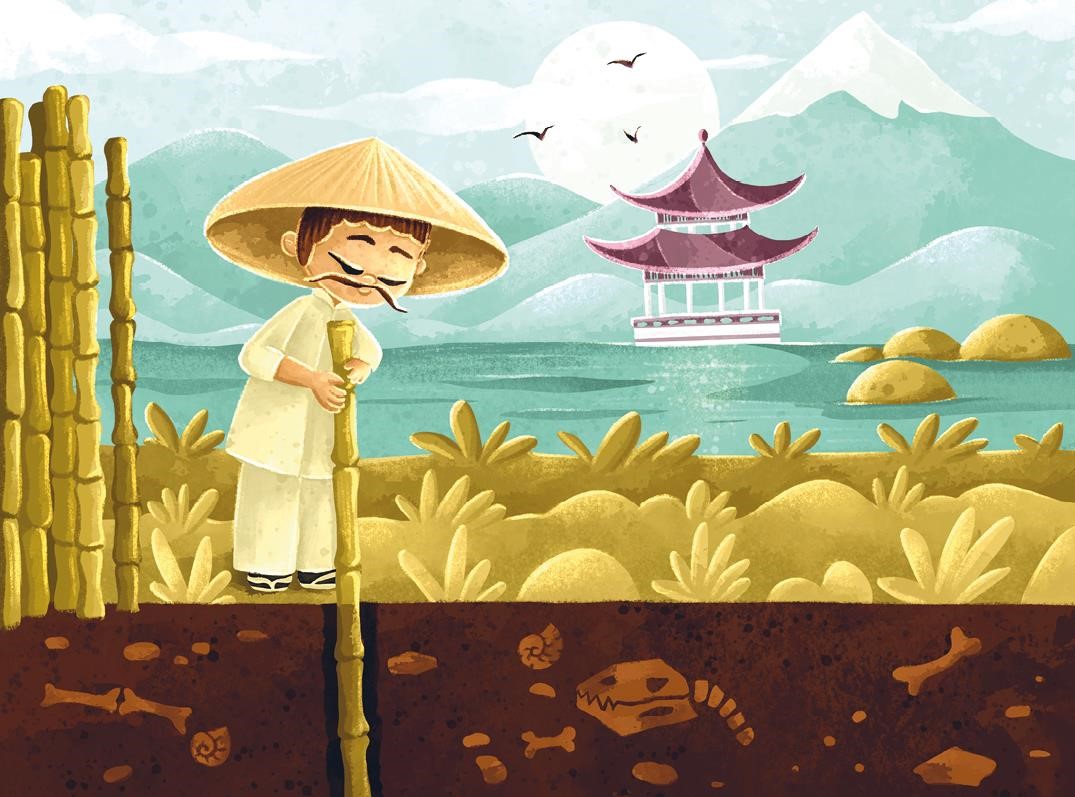 Конструкцию изобрел китайский инженер Ли Бин. Как это работало? Выкапывался колодец, в который вставляли трубу из дерева. Через нее с помощью специального механизма на каменное дно то опускали, то поднимали тяжелый металлический груз. Весил он около 200 кг, так что требовалось много людей и животных, чтобы вся конструкция заработала. Других источников энергии в то время не было, только физический труд. Груз действовал, словно сверло, и постепенно долбил крепкие горные породы. Воду или нефть, проступившую на дне колодца, откачивали с помощью бамбуковых труб.