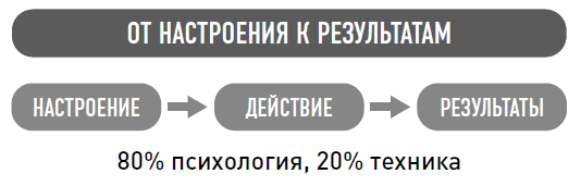 Вы хотите получить результаты, но они зависят от ваших действий. А от чего зависят ваши действия? Они зависят от того, в каком душевном состоянии вы находитесь. Способность привести себя в определенное состояние ума позволяет вам совершать действия, которые затем приводят к определенным результатам. Поэтому, когда вы действительно начинаете думать о деньгах, важно посмотреть, есть ли в вашем психологическом подходе к деньгам что-то, что ограничивает или останавливает вас в том, чтобы идти так быстро, как вы могли бы, – например, страхи, тревоги, депрессивные настроения.