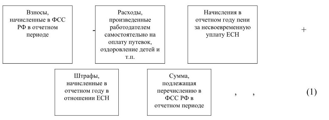 Сумма, подлежащая перечислению в ФСС Российской Федерации в составе единого социального налога, за отчетный период (нарастающим итогом с начала года) определяется по формуле (1):
