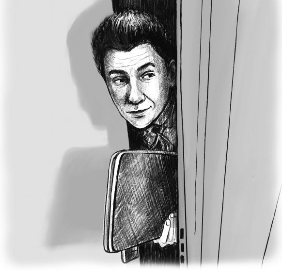 Комнатка оказалась небольшой, с тремя огромными столами, заваленными кипами бумаг. На стене красовалась карта, вся в цветных булавках и чёрных крестиках. Рядом с ней висела картина, изображающая что-то походящее на клубок грубых ниток или толстой спутанной пряжи. За самым большим столом, у окна, сидел гладко выбритый темноволосый мужичок с цепкими карими глазками, тыкал пальцами в кнопочки с буквами и глядел в светящийся экран. Посреди его жёсткой, как у ежа, шевелюры красовалось неровное седое пятно.