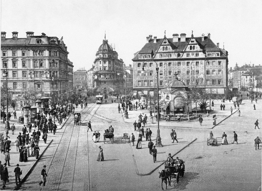 Вид Мюнхена от Карловых ворот в направлении железнодорожного вокзала. Фото начала ХХ века
