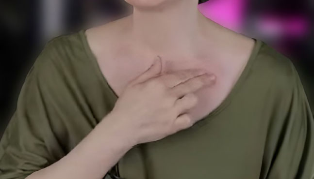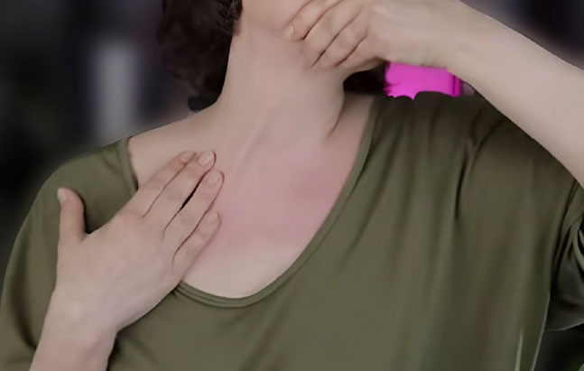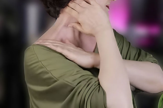 1. Ставим пальчики под ключицей в центре. Начинаем вращательными или пощипывающими движениями руки двигаться от центра к периферии. Сначала с одной стороны, потом с другой. Повторяем по пять раз.