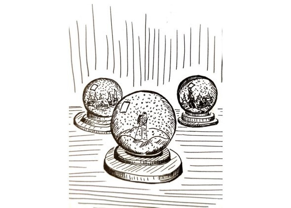 Обещанным сокровищем оказалась резная шкатулка, полная шаров, похожих на новогодние. Каждый шар был красив по своему и изображал разные сюжеты: уютный домик, в котором горит свет, или пара влюблённых в заснеженном лесу, или счастливая семья, катающая ребёнка на санках. А если встряхнуть такой шар, то внутри медленно начинали кружиться снежинки. Никаких денег или старинных украшений в шкатулке не оказалось.