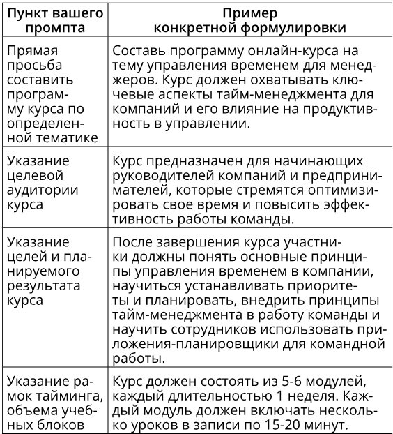 Что должно быть обязательно в промпте для ИИ, чтобы он выдал вам более-менее адекватный вариант программы курса: