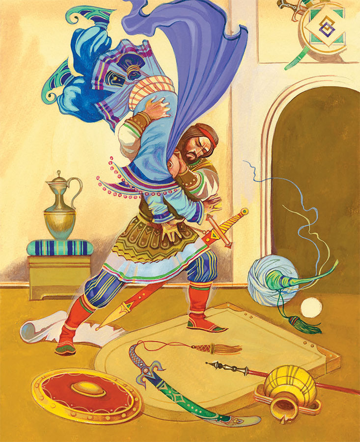 – Сударыня матушка, не пеленай ты меня, не свивай ты меня, а одень меня в латы крепкие, в шлем позолоченный да дай мне в правую руку па́лицу, да чтобы весом была па́лица в сто пудов.