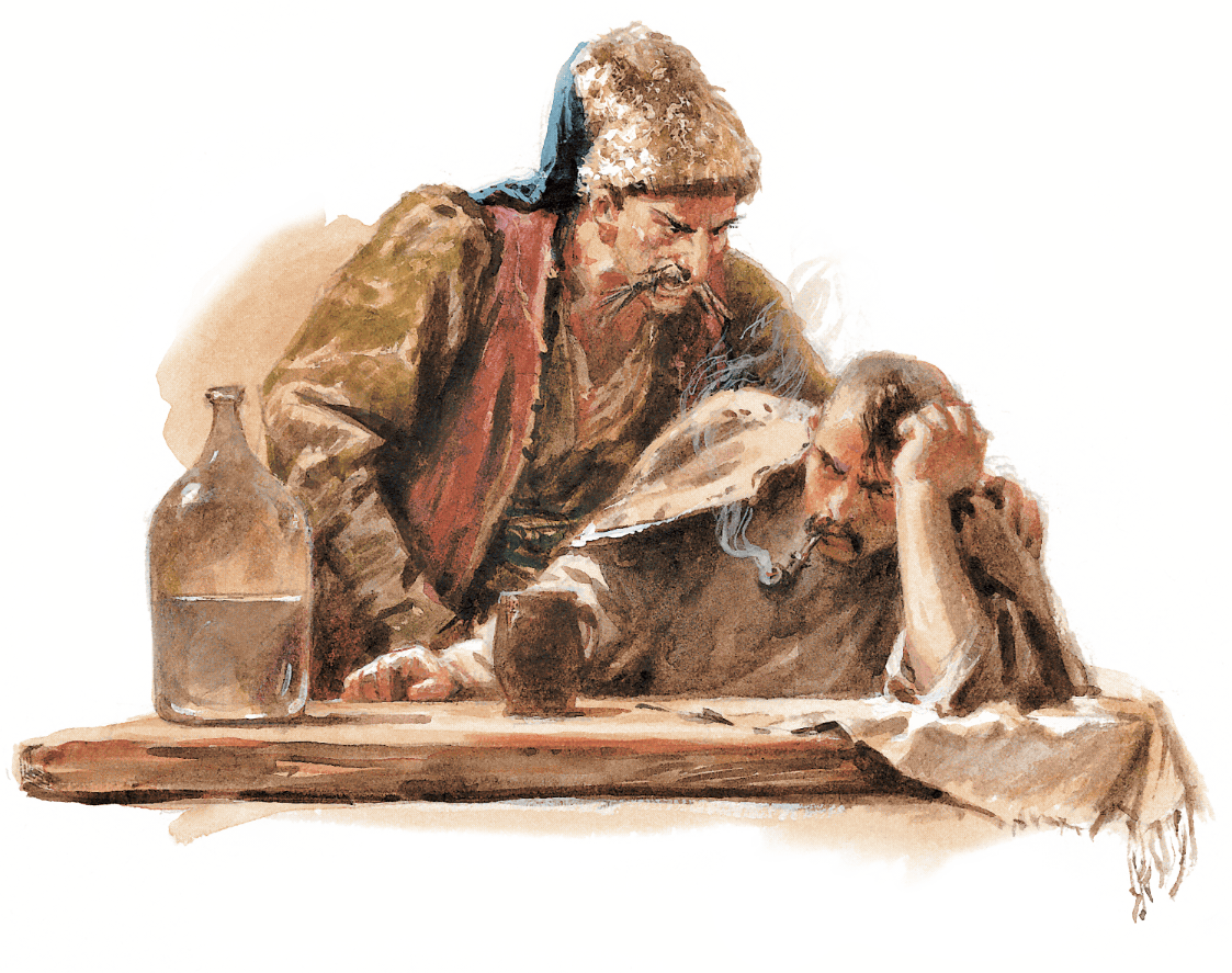 Как будто окаменев, не сдвинувшись с места, слушал Петро, когда невинное дитя лепетало ему Пидоркины речи. «А я думал, несчастный, идти в Крым и Туречину, навоевать золота и с добром приехать к тебе, моя красавица. Да не быть тому. Недобрый глаз поглядел на нас. Будет же, моя дорогая рыбка, будет и у меня свадьба: только и дьяков не будет на той свадьбе; ворон черный прокрячет вместо попа надо мною; гладкое поле будет моя хата; сизая туча – моя крыша; орел выклюет мои карие очи; вымоют дожди козацкие косточки, и вихорь высушит их. Но что я? на кого? кому жаловаться? Так уже, видно, Бог велел, – пропадать так пропадать!» – да прямехонько и побрел в шинок.