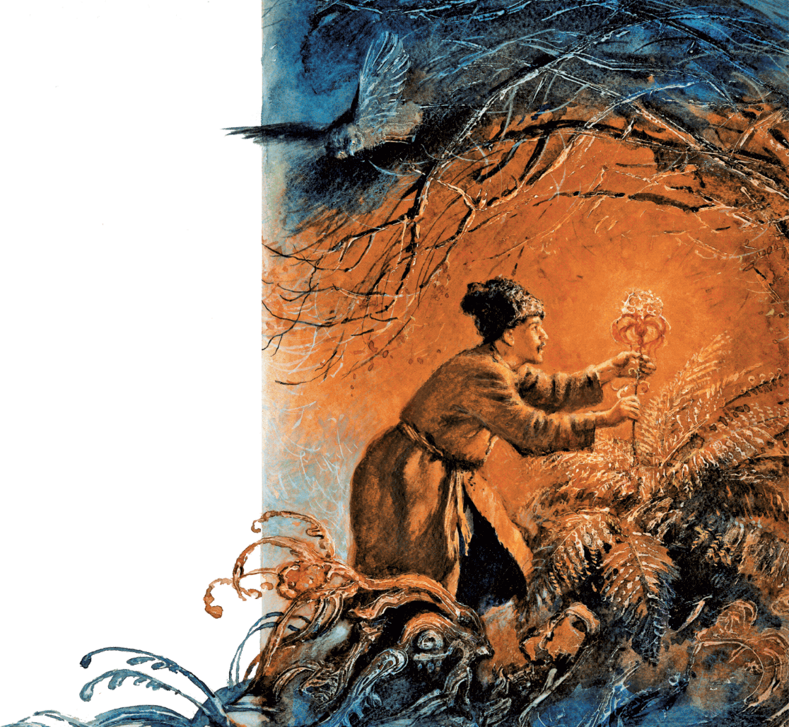 – Видишь ли ты, стоят перед тобою три пригорка? Много будет на них цветов разных; но сохрани тебя нездешняя сила вырвать хоть один. Только же зацветет папоротник, хватай его и не оглядывайся, что бы тебе позади ни чудилось.
