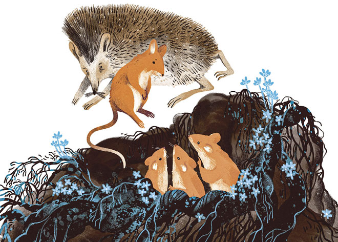 – Ты в своём уме, старый оболтус? – Из-под земли показалась маленькая ушастая голова полёвки. – Зачем так тарабанить по моей крыше? Это же я, Мус-Мус! Как, по-твоему, громила Зубагайл поместится в моей норе?