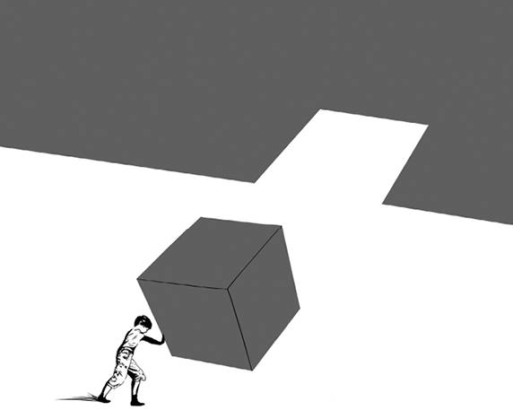 Такую громадину сложно переместить, куб явно больше нас! Но если увидеть ситуацию в другом контексте и лишить куб баланса (например, поставить на ребро), то даже ребенок сможет решить, в какую сторону его сдвинуть, и сделать это без титанических усилий.