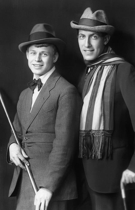Когда молодой Есенин появился в Петербурге, первые шаги на поэтическом поприще он делал в образе этакого деревенского самородка, простодушного и обаятельного рубахи-парня. Тогда этот образ был списан с Николая Клюева, чья слава крестьянского поэта была в зените. Именно в таком обличье Есенин добился первой известности, стал любимцем девушек и вместе с Николаем Клюевым выступал перед императрицей Александрой Федоровной и ее дочерями в Царском Селе. Приблизительно таким «крестьянским» поэтом-лириком с «буйствующим крестьянским разумом» представлялся он и Мариенгофу «Ив моем мозгу непременно возникал образ мужика лет под тридцать пять, роста в сажень, с бородой как поднос из красной меди». Конечно, никакой бороды и роста в сажень у молодого Есенина не было. «Передо мной стоял паренек в светлой синей поддевке. Под синей поддевкой белая шелковая рубашка. Волосы волнистые, желтые, с золотым отблеском. Большой завиток как будто небрежно (но очень нарочно) падал на лоб. Завиток придавал ему схожесть с молоденьким хорошеньким парикмахером из провинции. И только голубые глаза (не очень большие и не очень красивые) делали лицо умнее – и завитка, и синей поддевочки, и вышитого, как русское полотенце, ворота шелковой рубашки», – напишет о первом впечатлении от встречи Мариенгоф.