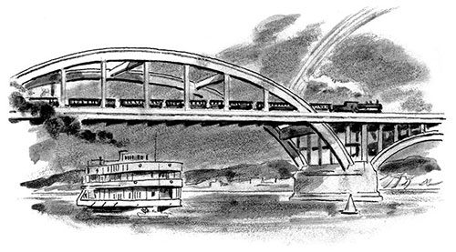 В воде под бакеном мелькали стаи рыб. На них было интересно смотреть. Но тут из-за поворота реки, из далёкой дали, где зелень лесов сливается с голубым небом, выплыл пароход. Он был похож на белую гору. Лампочка во все глаза глядела на него, слушала музыку, которую доносил с палубы ветер.