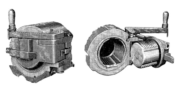Поршневой затвор 122-мм гаубицы обр. 1910/30 гг. в закрытом и открытом положении.