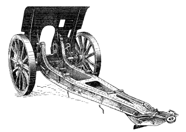 Лафет 122-мм гаубицы обр. 1910/30 гг. со снятой качающейся частью орудия. Прави́ло и сошник уложены по-походному.