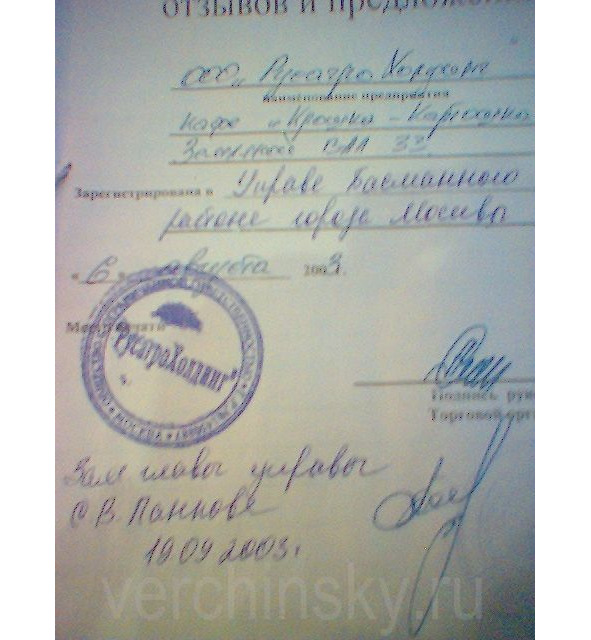 У специалиста отдела информации Зайчиковой Татьяны выяснил, что никого из администрации уже нет, можно сделать запись в книге отзывов и предложений. Этой книгой оказалась простая толстая тетрадь, в которой и скапливались замечания посетителей этого уважаемого центра. На просьбу выдать настоящую книгу отзывов и предложений был дан ответ: «Это единственная книга для жалоб». Ну что ж, об этом я тоже написал в предложенный кондуит.