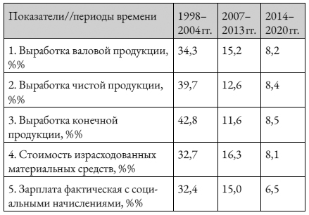 Таблица 3. Среднемесячные приросты показателей производительности труда (в % %) и среднемесячные уровни зарплаты и прибыли (в рублях) в промышленности России в 1998–2020 годах*