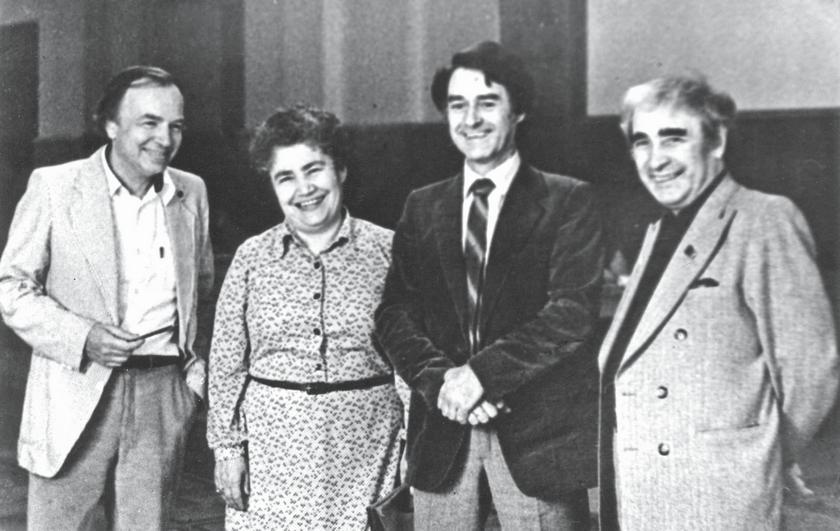 Москва. Кремль. На вручении Государственной премии СССР в области литературы и искусства лауреаты: Константин Ваншенкин, Андрей Дементьев, Владимир Наумов, Наталья Белохвостикова. 1986