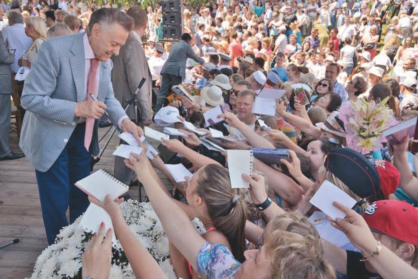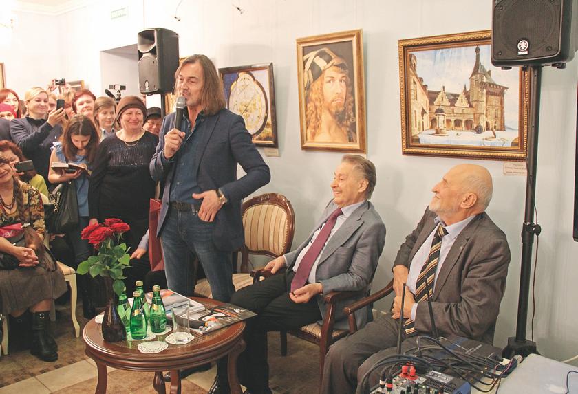 Больше всех поклонниц собрал в Доме поэзии Народный художник РФ Никас Сафронов на открытии своей выставки. Вместе с ним приехал в гости и Николай Дроздов, популярный телеведущий, ученый-зоолог. Тверь, 2016