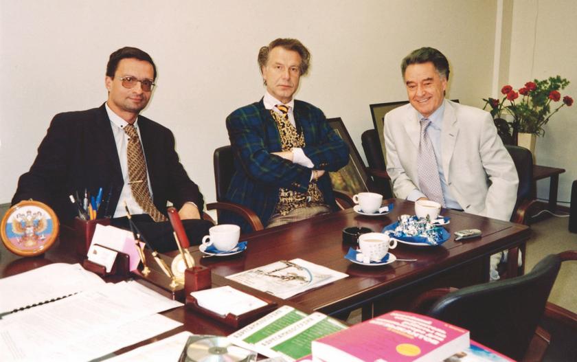 С другом, директором «Радио России» Алексеем Абакумовым и Народным художником СССР Александром Шиловым за чашкой чая. 2006