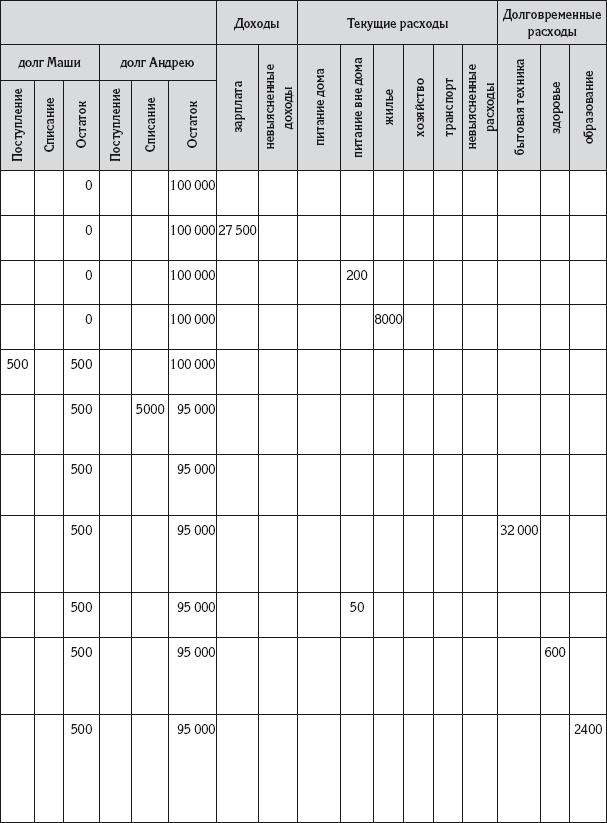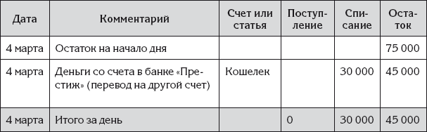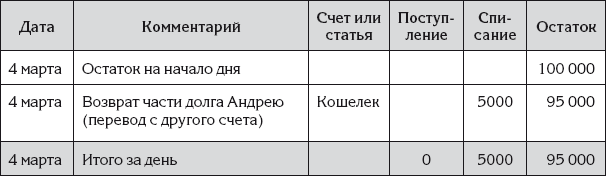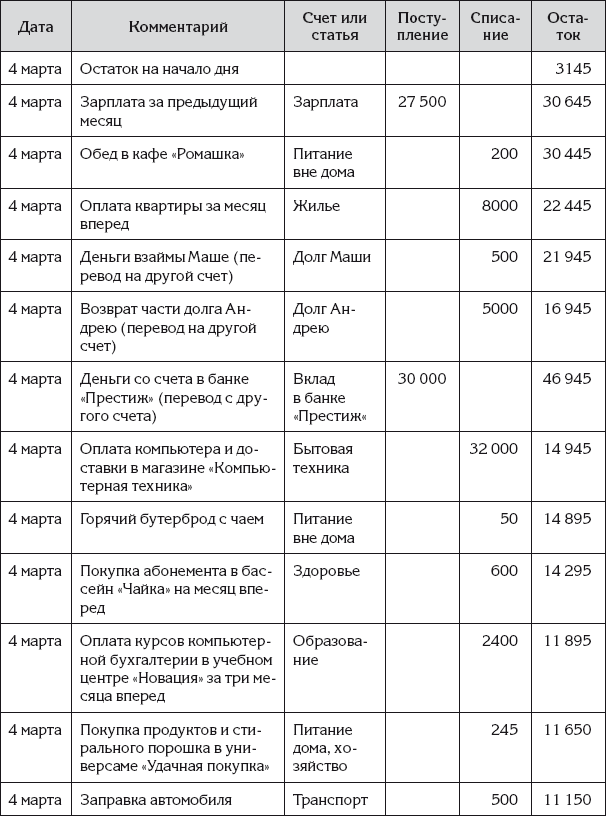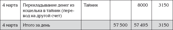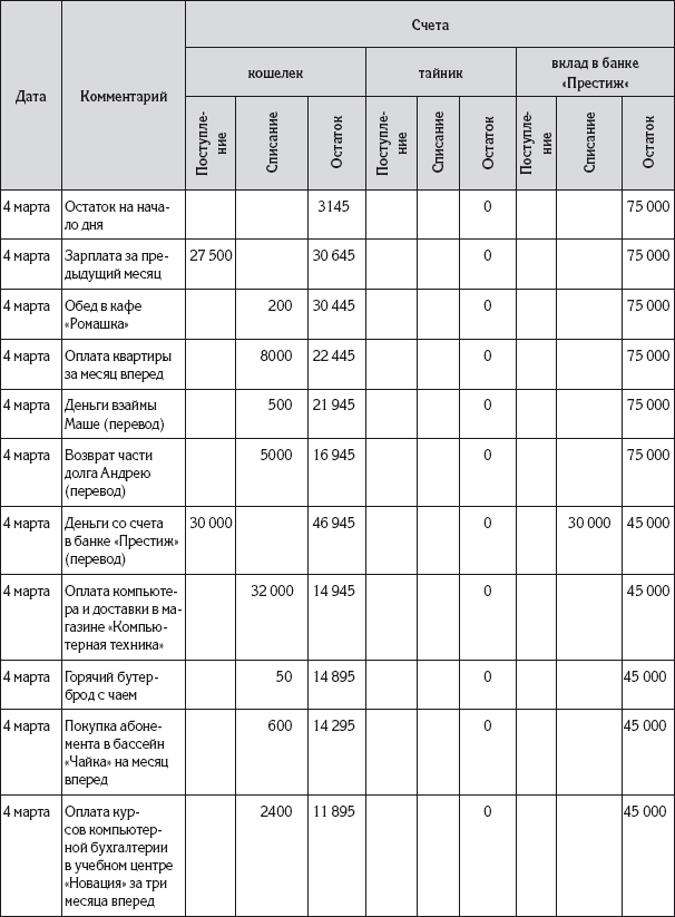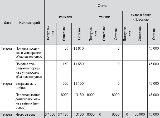 Пример такой таблицы для Ирининых операций от 4 марта представлен в виде табл. 13.
