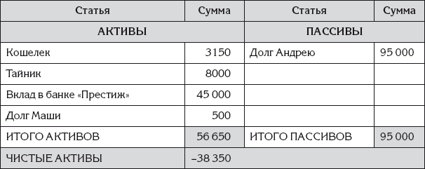 В последней строке отчета рассчитана итоговая сумма, характеризующая текущее Иринино финансовое положение. Итоговая сумма называется чистыми активами.