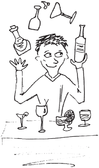 Обслуживает посетителей бара, снабжая их напитками и закусками.