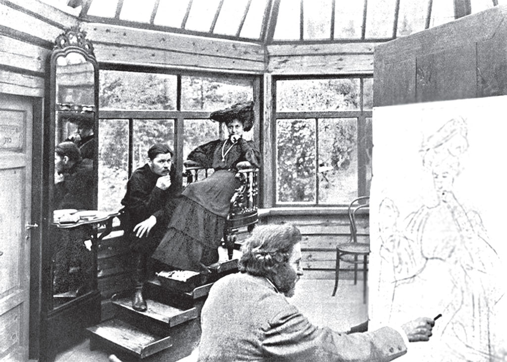 А. М. Горький и М. Ф. Андреева у И. Е. Репина